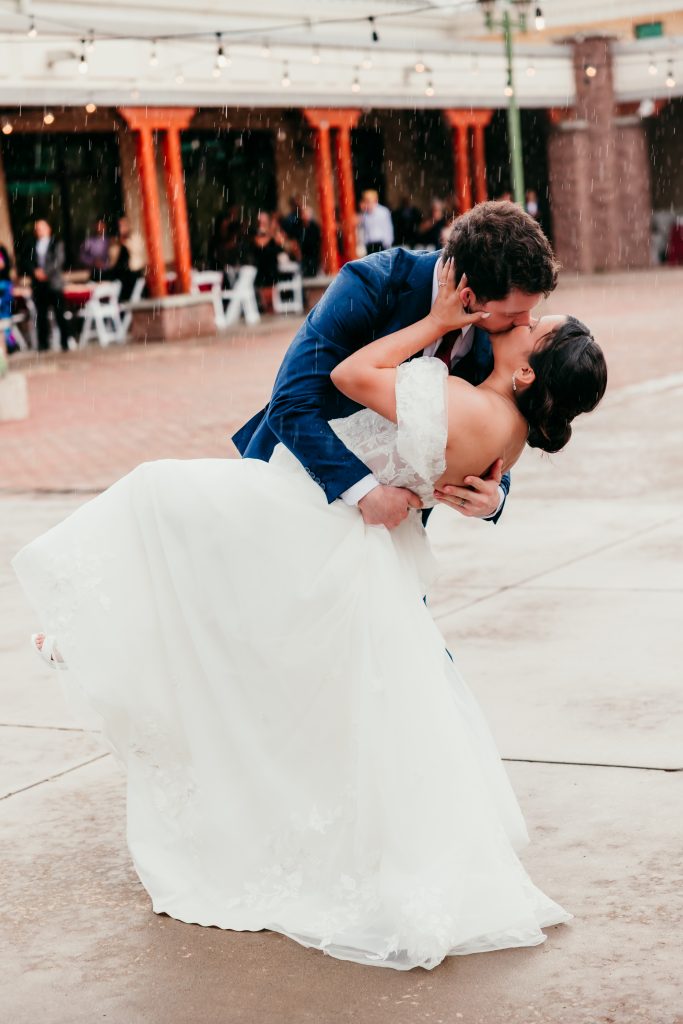 Leah + Ryan’s celebration was a bold and beautiful expression of romance, defined by rich berry tones and thoughtfully curated details throughout the day. The color palette added depth and drama, creating an atmosphere that felt both elevated and timeless. Leah’s off-the-shoulder gown from Bridal Novias was effortlessly romantic, striking the perfect balance between classic elegance and modern femininity. Each element of the design felt intentional, working together to tell a cohesive and meaningful story. One of the most unforgettable moments came during their first dance, shared beneath the rain, turning an unexpected moment into something truly magical. Captured with artistry and emotion by Wild Child Photography, the day lives on through imagery that reflects the beauty, spontaneity, and love that defined their celebration.