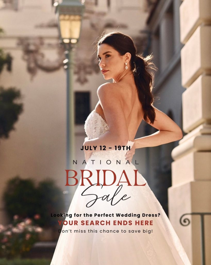 It’s their BIGGEST bridal sale of the year 💍✨ Gowns starting at just $99?! Yes, please! July 12–19 only! Book your appointment ASAP! 🗓️